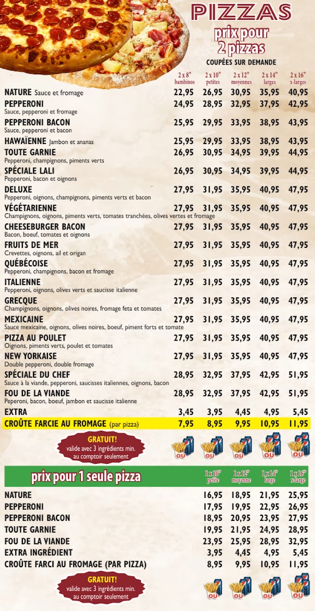 Welcome to Pizza Lali, the new favorite for pizza enthusiasts in Saint-Eustache! Nestled at 21 Chem. d'Oka, this cozy restaurant specializes in a delightful array of pizzas that promise to satisfy your cravings. The menu boasts a variety of options, but the standout is the Special Lali Pizza, praised for its perfect balance of textures—soft yet firm, never soggy. Customers love the rich, flavorful sauce, which many have dubbed a 'secret ingredient' that elevates each bite.